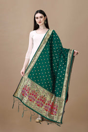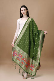 Enrich your look with this dupatta from Devangi Fashion available on amazon. Comfortable and fashionable, this Patola Silk dupatta is a perfect partner for all your looks. Give a touch of charismatic splendour to your ethnic silhouette with this gorgeous silk dupatta in a pretty hue. Adorned with floral design and tassels on edges will underline pure feminine sophistication. This beautiful creation can be flaunted at the next cultural meet with a contrast kurti, matched bottom, and classy platforms. This dupatta will keep you highlighted in someone's wedding or in engagement. Use it as casual or party wear for shopping, daily wear at home, college, family, meetings, festive occasions. 2.3 meter Dupatta .